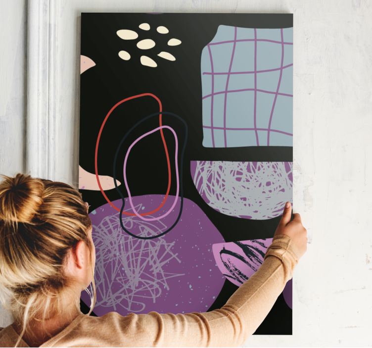 Oplev den fantastiske verden af grafisk design med vores Dekorativt billede på lærred abstrakte botaniske træk. Dette unikke kunstværk kombinerer former, collage og geometriske elementer i nuancer af lilla og violet, hvilket skaber en modern og abstrakt atmosfære. De blomstrede detaljer tilføjer et strejf af elegance og liv til ethvert rum, og vil uden tvivl vække beundring hos dine gæster!
