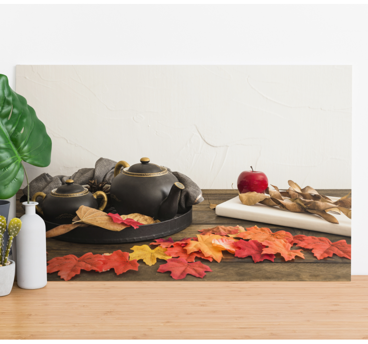 Oplev skønheden ved efteråret med vores Efterårs te arrangement landskab lærred, der bringer naturens farver ind i dit hjem. Dette grafiske design fanger essensen af en hyggelig te-stund med tekander, efterårsblade og et rustikt stilleben, der inkluderer æbler og et smukt bord. Det skaber en varm og indbydende atmosfære, perfekt til at samle familie og venner omkring.