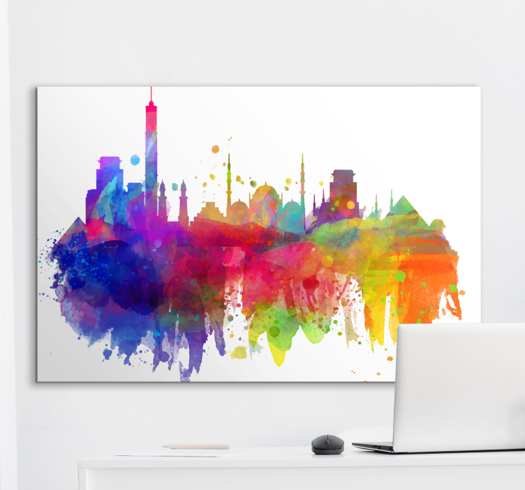 Vores Farverig bysilhuet by lærredsbillede er ideelt til at forvandle dit hjem eller kontor til et inspirerende sted. Denne vægkunst giver ikke blot liv til dine vægge, men den tilføjer også personlighed og stil. Med sin iøjnefaldende design og farver vil den uden tvivl vække opmærksomhed og beundring fra gæster. Uanset om du er en kunstelsker eller bare ønsker at pifte dit rum op, er dette lærredsbillede et must-have!