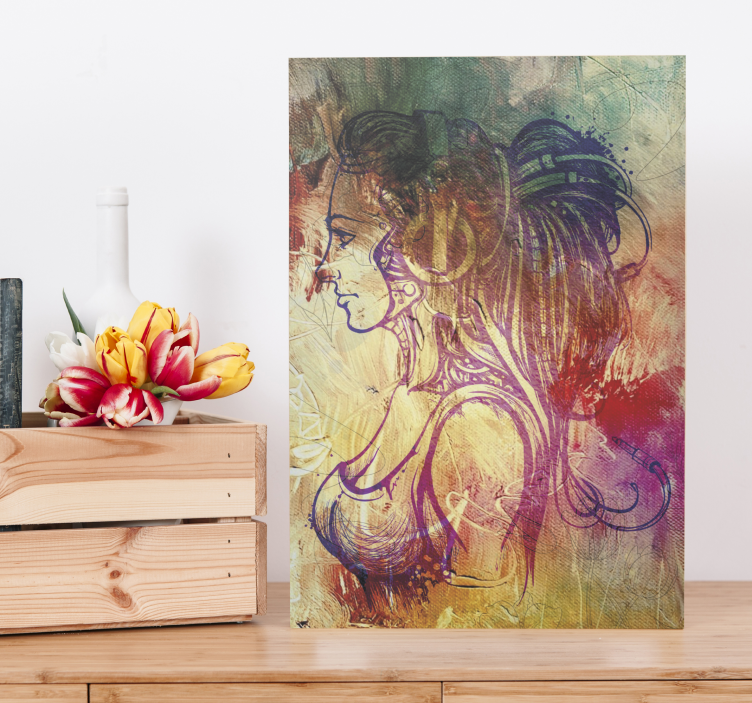 Mangler du stadig det perfekte design? Så er dette lærredskunsttryk måske ideelt for dig. Det viser en silhuet af en pige med langt hår, der er fyldt med mange farver og har en abstrakt stil. Perfekt til at dekorere dit hjem, stue, soveværelse eller ethvert andet rum, du ønsker at indrette med dette fantastiske design.