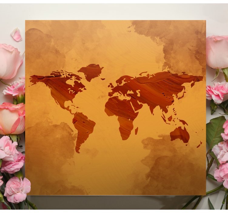 Reference: Q6671Designet præsenterer et vintage kort over verden, der fremhæver kontinenter med en struktureret finish. Baggrunden viser bløde, jordnære nuancer, der supplerer de geografiske konturer og skaber en harmonisk visuel effekt. Dette kort fungerer som en elegant hyldest til udforskning og global bevidsthed.