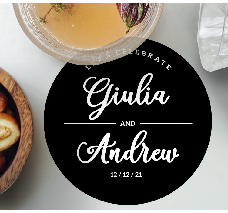 Vores bryllup coaster med personlige festnavne er den perfekte måde at fejre jeres specielle dag på! Designet er grafisk og kan tilpasses med jeres brugerdefinerede navne og begivenhedsdato, hvilket gør hver coaster til et unikt minde. Uanset om det er til receptionen eller som en gave til gæsterne, vil disse bryllup coaster give et personligt præg til festlighederne.