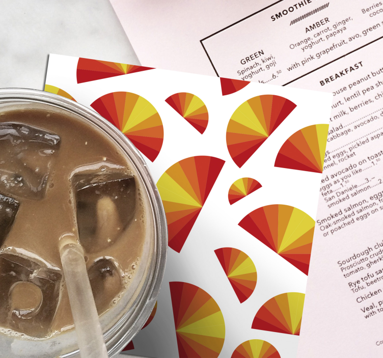 Oplev den unikke skønhed i vores Coaster geometriske vifte mønstre, hvor grafisk design møder funktionalitet. Dette produkt præsenterer en fascinerende kombination af mønstre, halvcirkel, halvcirkler, striber, og den varme glød fra sol og solnedgang. Med en farverig struktur vil disse coasters tilføje et kunstnerisk præg til ethvert rum.