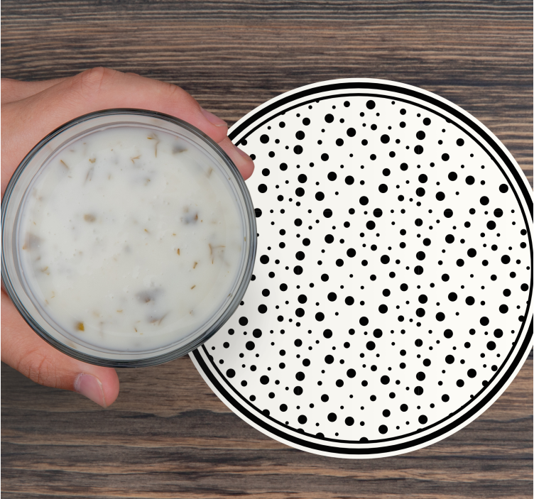 Oplev vores fantastiske Coaster med sort prikket mønster, der bringer et grafisk og moderne udtryk til dit hjem! Dette design kombinerer polka prikker med et abstrakt og geometrisk look, der tilføjer en minimalistisk ramme til din indretning. Den monokrome farveskala gør det til et alsidigt valg, der passer perfekt ind i enhver stil.