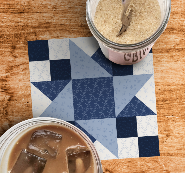 Elevate the look of your table with this vintage coaster featuring a patchwork blue star triangle design. Perfect for placing your glasses of beer, cups of coffee, and other beverages. This coaster can be cleaned or washed multiple times without any issues. The product is made of high-quality materials, ensuring its durability. Order this drink vinyl coaster now and receive it in just a few days. Explore other lovely designs that you will also adore.