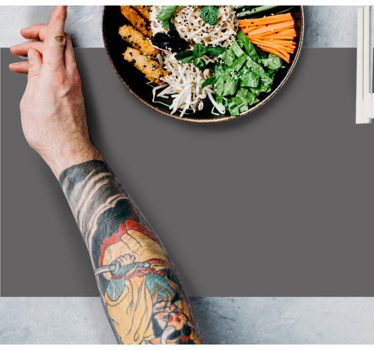 Oplev den fantastiske dækkeserviet til madskål layout, som kombinerer et stilfuldt og grafisk design med funktionalitet. Med sin grå, monofarvede farve og en struktur, der minder om en tatovering, tilføjer denne dækkeserviet et moderne præg til dit spiseområde. Uanset om du serverer grøntsager eller nudler, vil denne dækkeserviet beskytte dit bord og samtidig skabe en indbydende atmosfære.
