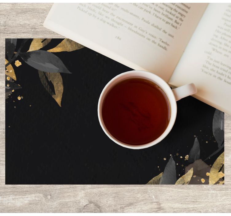 Vores Elegant dækkeserviet med raffinerede bladmotiver præsenterer et grafisk design, der fanger øjet med sin sorte baggrund, der fremhæver de kunstneriske akvarelmotiver af blade og blomster. Det malede udtryk, der kombinerer gyldne accenter med et minimalistisk og sofistikeret look, tilføjer et strejf af glamour til enhver borddækning. Denne dækkeserviet er ikke kun et funktionelt element, men en ægte kunstnerisk udsmykning, der vil forvandle dine måltider til en visuel oplevelse!