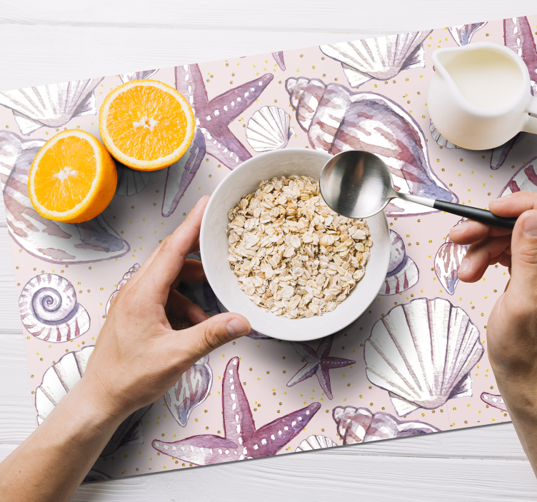Oplev skønheden i havet med vores Skaldyr mønster dækkeserviet, der præsenterer et grafisk design fyldt med muslingeskaller, søstjerner, sand og liv fra oceanet. De bløde farver og naturlige elementer skaber en atmosfære, der bringer stranden lige ind i dit hjem. Denne dækkeserviet er ikke kun praktisk, men også et kunstnerisk indslag, der vil imponere dine gæster!