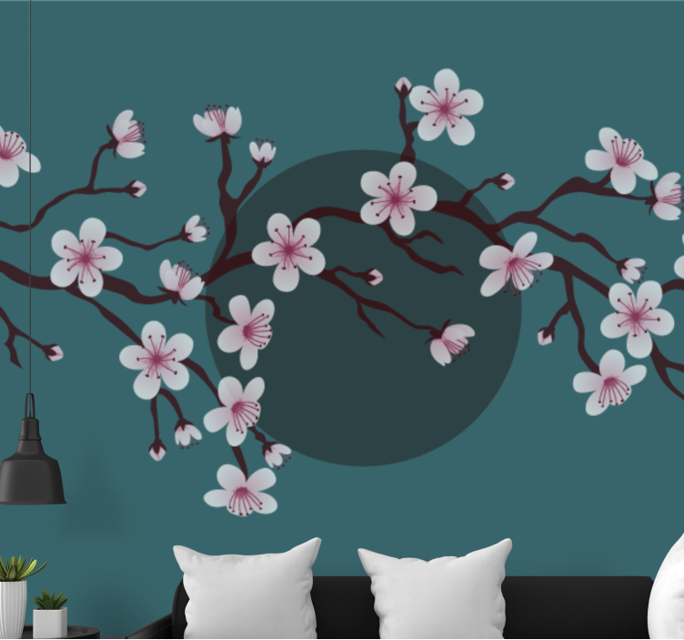 Oplev skønheden i naturen med vores fototapet blomster blomstrende kirsebærgren, der præsenterer en grafisk illustration af kirsebærblomster og kirsebærtræer. Dette design er inspireret af asiatisk æstetik og indfanger de naturlige elementer i en fortryllende afdeling, hvor blomsterne blomstrer i al deres pragt.