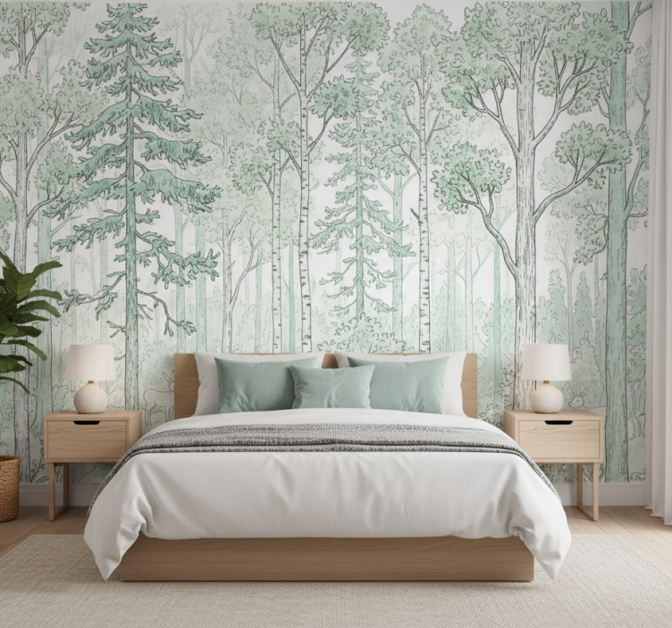 Vores Fototapet skov mint skitse er det perfekte valg til at forvandle din indretning. Dette fototapet skov skaber en harmonisk stemning, der inviterer til ro og afslapning. Med sine naturlige toner og kunstneriske udtryk passer det perfekt i stuen, soveværelset eller kontoret. Lad dette tapet bringe naturen ind i dit hjem og inspirere dig til kreativitet og velvære!
