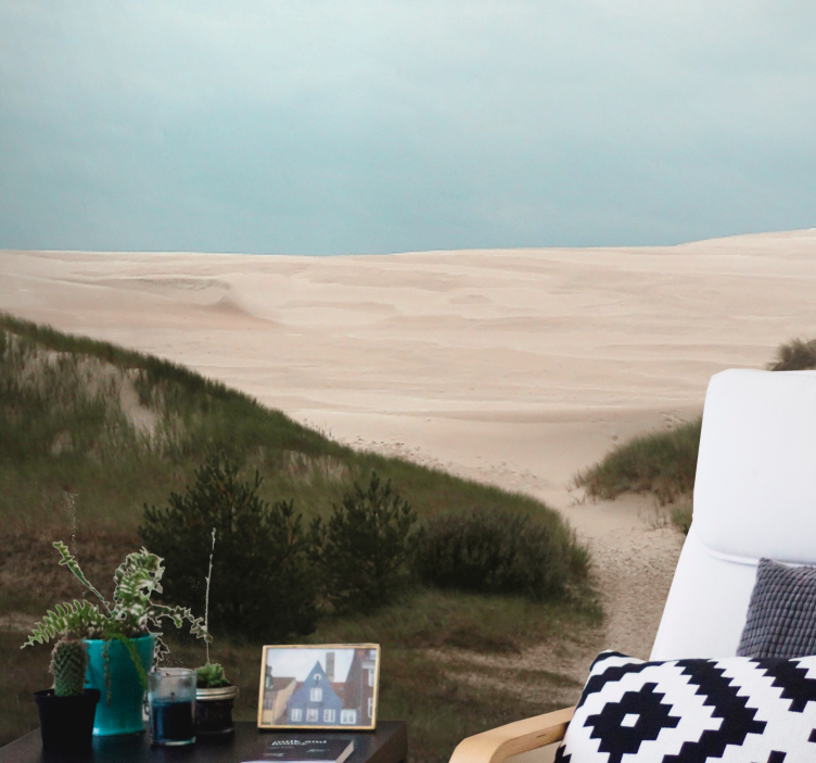 Oplev det betagende landsby fototapet sanddune sti, der bringer naturens skønhed ind i dit hjem! Dette design fanger det maleriske landskab med bløde klitter, gyldne sandstræk og en klar, blå himmel, der sammen danner en harmonisk atmosfære. Det er som at træde ind i en fredfyldt oase, hvor naturens magi og stilhed smelter sammen på væggene.