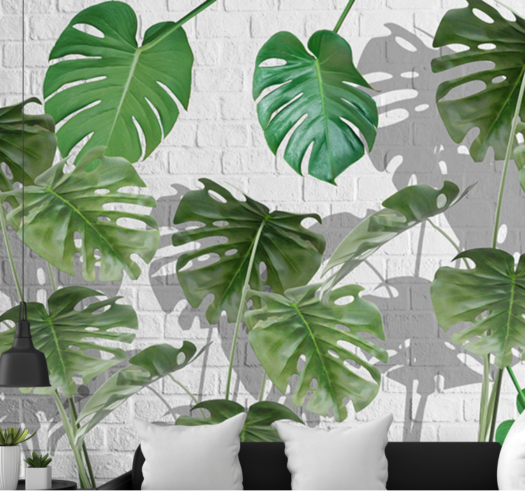Oplev skønheden i vores Tapet natur monstera blad arrangement, der bringer det tropiske udtryk ind i dit hjem! Dette grafiske design kombinerer fantastiske blade med en stilfuld mursten baggrund, hvilket giver en livlig og grøn atmosfære, der vil forvandle ethvert rum til en oase af naturlig skønhed.