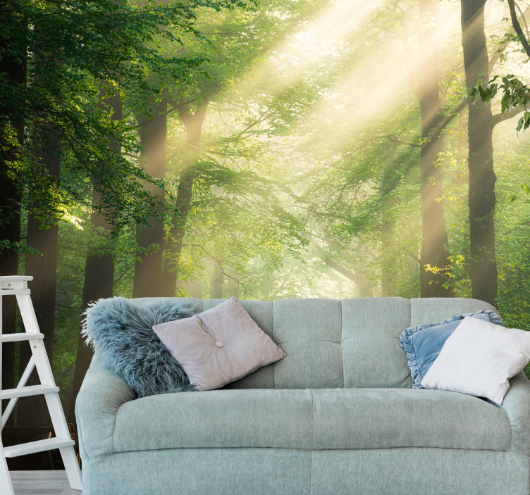 Det Tapet natur sol mellem skovtræer tapet natur er ideelt til at skabe en indbydende og afslappende atmosfære. Forestil dig at træde ind i et rum, hvor naturens skønhed træder frem fra væggene og skaber en fredfyldt oase. Dette tapet er perfekt til dem, der ønsker at bringe liv og lys ind i deres hjem, samtidig med at det tilføjer et strejf af elegance og stil.