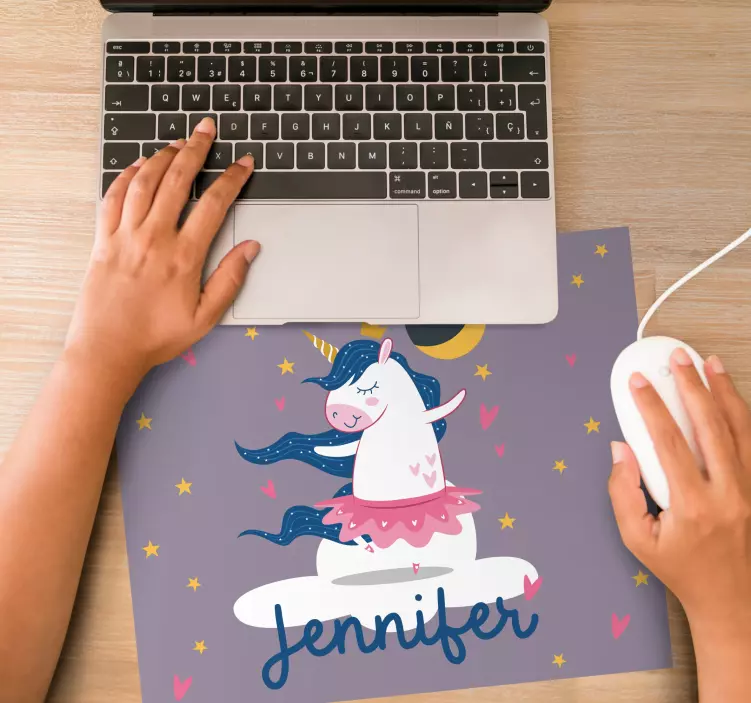Vores ballerina enhjørning på tilpassede musemåtter i skyen er et perfekt produkt til at gøre online-studiet pænere og lettere! Du kan også give dit barn en personlig vare med hans/hendes navn!