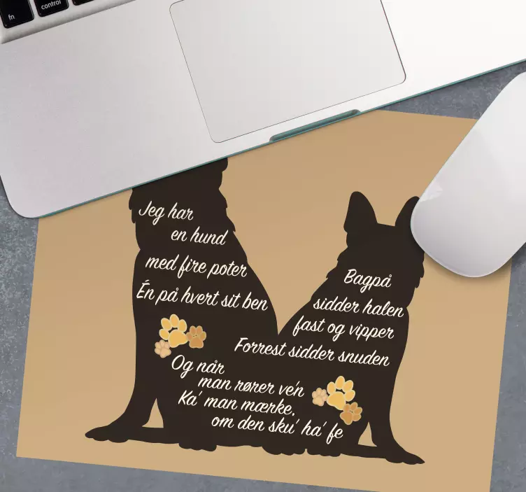 Musemåtte med silhuetdesign af en hund med teksten 'citat om at have en hund'