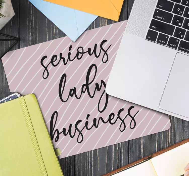 Oplev den originale musemåtte legende lyserøde striber, der kombinerer et grafisk design med en stilfuld og elegant æstetik. Denne musemåtte er perfekt til damer i forretning, som ønsker at tilføje et motiverende og inspirerende touch til deres arbejde. De legende lyserøde striber og den kalligrafiske tekst gør den til et fantastisk valg for dem, der søger et feminint og moderne kontormiljø.