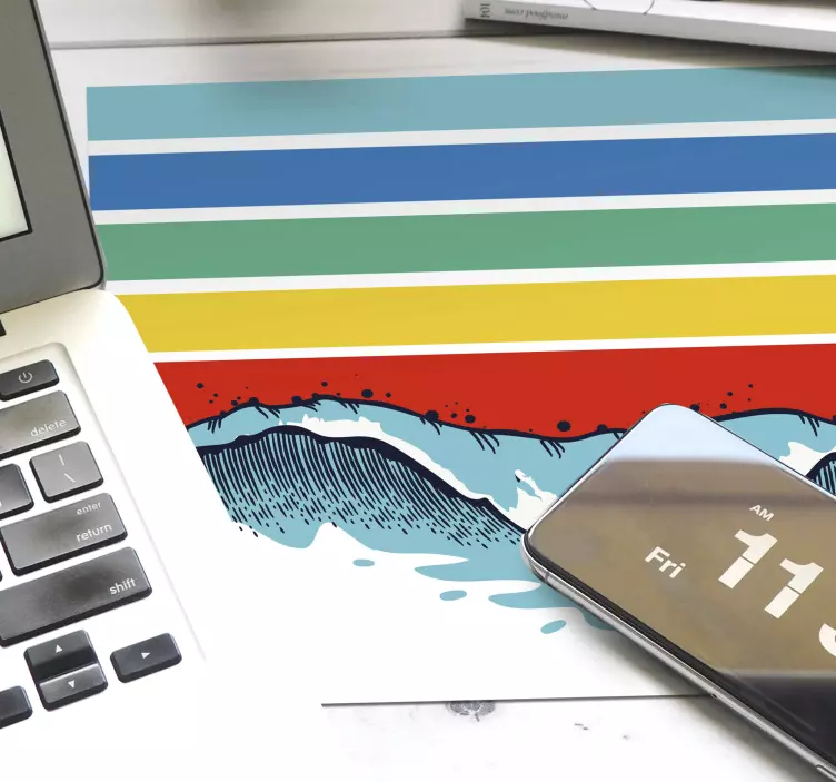 Oplev vores tekstur musemåtte bølger og striber, hvor det grafiske design bringer naturens skønhed ind i dit arbejdsområde. Med et inspirerende mønster af bølger og striber, der minder om det farverige ocean, vil denne håndtegnede illustration give dit skrivebord et personligt præg. Den abstrakte tegning af væske og surf skaber en dynamisk atmosfære, som gør arbejdet sjovere og mere kreativt!