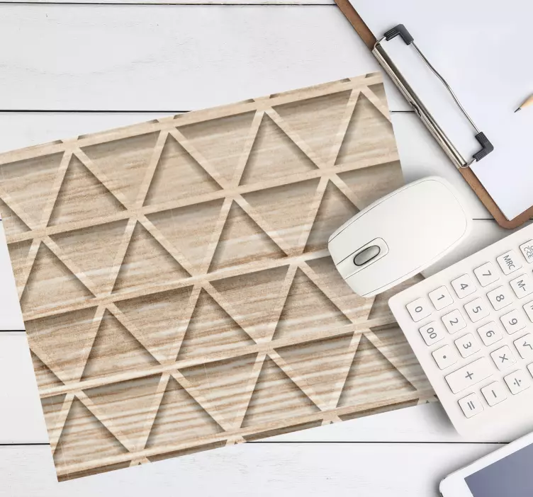 Reference: N4787Dette stykke, der har et geometrisk trekantet mønster, præsenterer en tekstureret trælignende overflade. Designet understreger enkelhed og elegance, hvilket gør det til et attraktivt supplement til ethvert arbejdsområde.