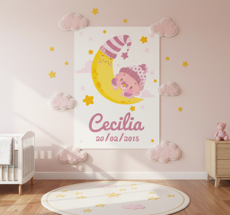 Reference: G922Børneværelse plakat baby med navn og fødselsdag