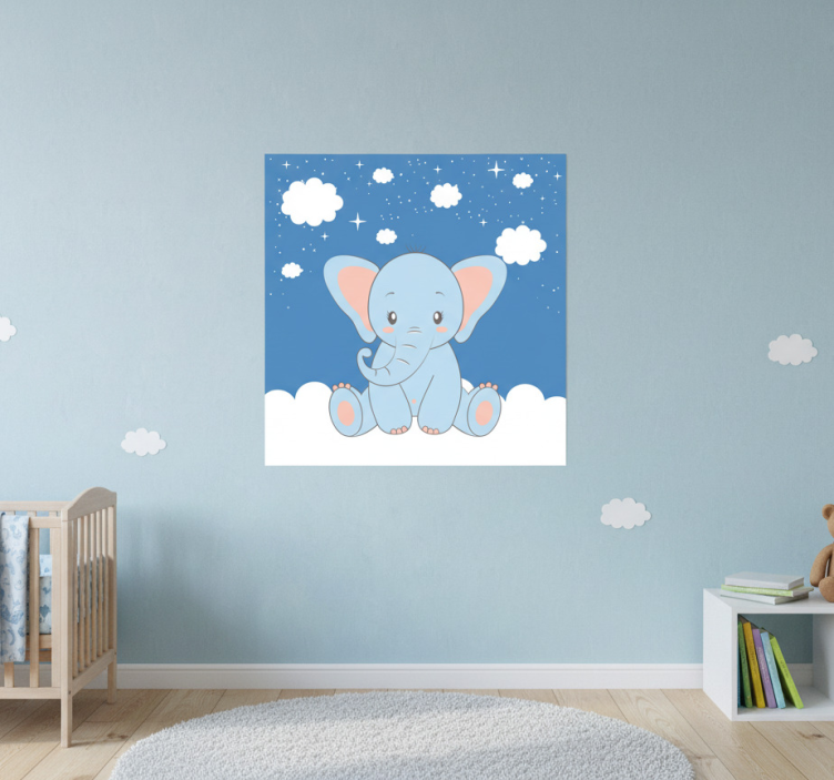 Børneværelse plakat sød baby tegnefilms elefant blå