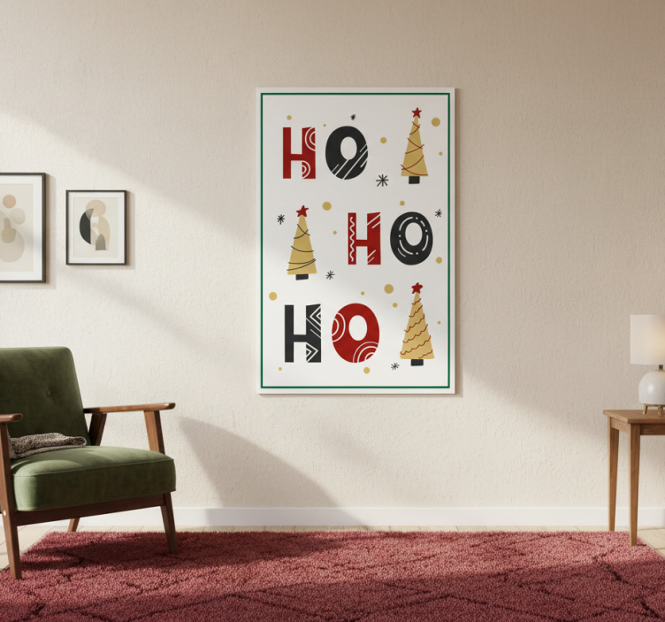 En Juleplakat ho ho ho juletekst design er en fantastisk måde at bringe julens glæde ind i dit hjem på! Denne plakats stemningsfulde design skaber en varm og indbydende atmosfære, der vil begejstre både familie og gæster. Uanset om du hænger den i stuen, køkkenet eller entréen, vil den helt sikkert blive et samtaleemne. Lad den inspirere til hyggelige stunder og magiske minder i juletiden!