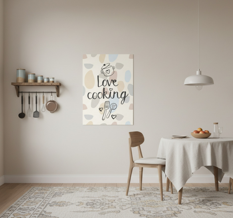 En Køkken plakat elsker at lave mad køkken plakat er ikke bare en dekoration; den inspirerer til glæde i madlavningen! Denne plakat vil ikke kun pryde dine vægge, men også motivere dig og dine gæster til at udforske nye opskrifter og skabe uforglemmelige måltider. Den tilføjer en livlig atmosfære, der indbyder til madglæde og kreative stunder i køkkenet!