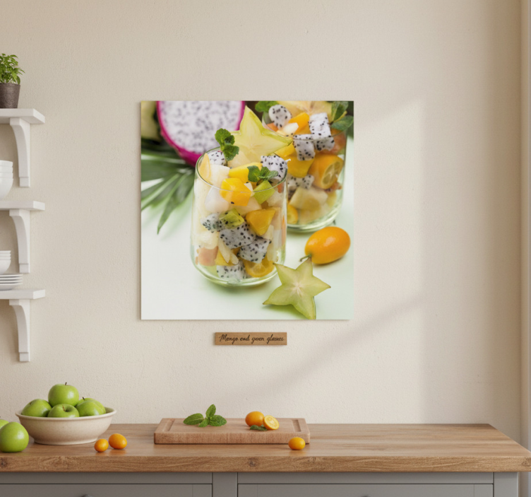 Der er mange grunde til, at vores Køkken plakat mango og grønne glas køkken plakat bør være en del af din indretning! Denne plakat tilføjer ikke kun farve og liv til dit køkken, men den fungerer også som en inspirerende samtalestarter for dine gæster. Det grafiske design skaber en behagelig atmosfære, der kan motivere til hyggelige stunder over madlavning og samvær. Giv dit køkken karakter og personlighed med denne fantastiske plakat!