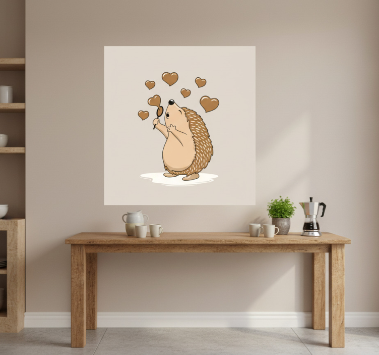 En Køkken plakat med pindsvin og kærligheds hjerter køkken plakat er den perfekte måde at tilføje personlighed og charme til dit rum. Denne plakat vil ikke kun pryde væggene men også inspirere til gode stunder og samtaler omkring madlavningen. Den livlige grafik vil bringe et smil frem på alles ansigt og skabe en hyggelig atmosfære, hvor familie og venner kan samles.