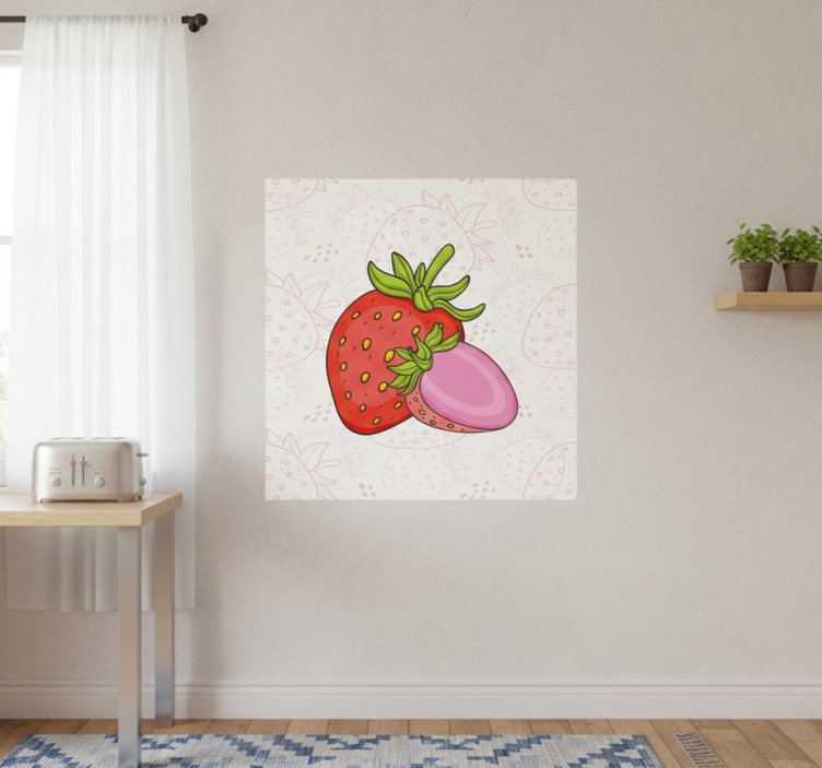 En Køkken plakat med søde røde og lyserøde jordbær køkken plakat er perfekt til at tilføje en sjov og livlig dimension til din indretning. Den skaber ikke blot et visuelt fokus, men inspirerer også til glæde og kreativitet i madlavning. Forestil dig, hvordan denne plakat kan lyse dit køkken op og bringe smil frem, hver gang du træder ind i rummet! Det er en fantastisk måde at vise din kærlighed til mad og frugt på, samtidig med at du tilføjer et strejf af personlighed til din indretning.