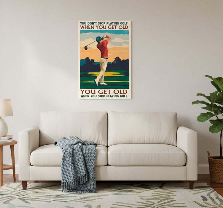 En sportsplakat med golfspil sportsplakat er den ideelle måde at bringe liv og energi ind i dine omgivelser. Denne plakat vil inspirere både golfspillere og tilskuere med sit dynamiske design, der fremhæver sportens elegance. Uanset om du ønsker at skabe en sporty atmosfære i stuen eller et motiverende miljø på kontoret, vil denne plakat være et perfekt valg, der vækker begejstring og passion for golf!