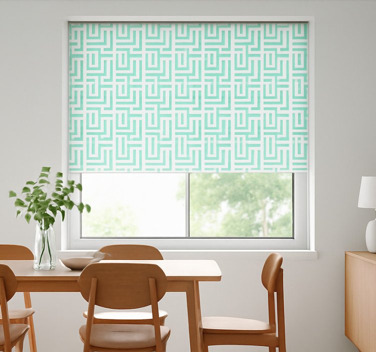 Blå geometriske firkanter effekt spisestue rullegardiner