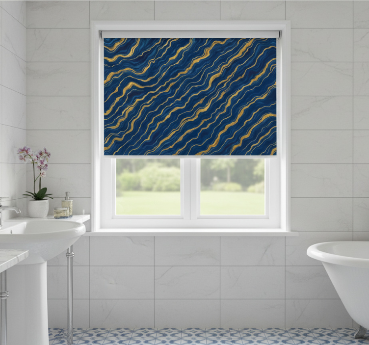 Blå rullegardin i blå og gylden marmor