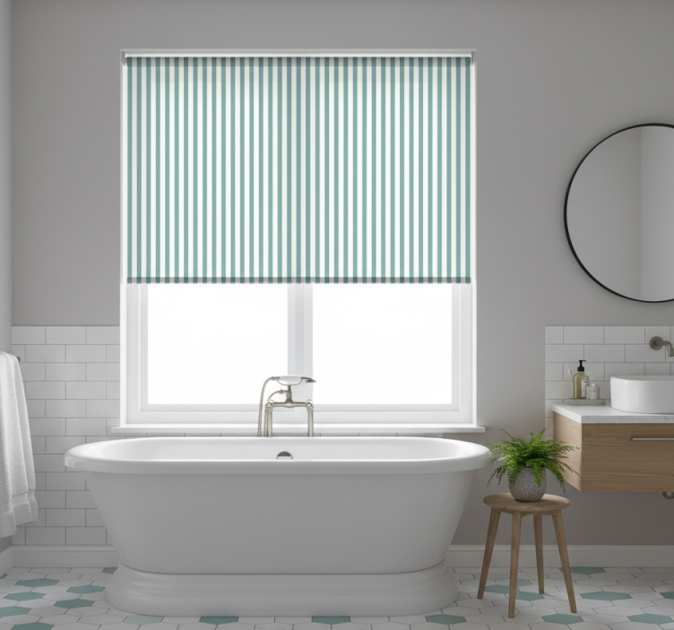 Blå rullegardin i teal striber