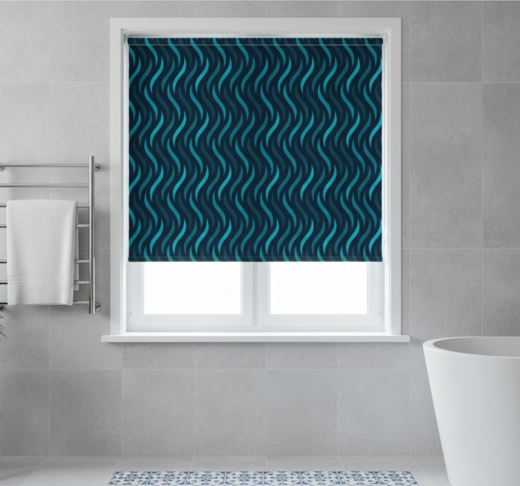 Blå rullegardin med bølget tekstur