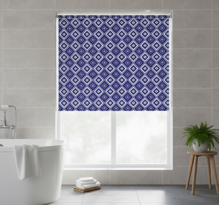 Blå rullegardin med diamantmønster