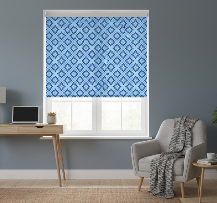 Med et blå rullegardin med geometrisk blå pixelmønster kan du forvandle dit hjem til en stilfuld oase. Dette blå rullegardin tilføjer en frisk og livlig atmosfære til ethvert værelse, hvilket gør det til et ideelt valg til både stuer og soveværelser. Det grafiske design skaber en dynamisk baggrund, der kan komplementere din indretning og samtidig give en følelse af ro og orden. Det er ikke blot en praktisk løsning; det er også en æstetisk fornøjelse!