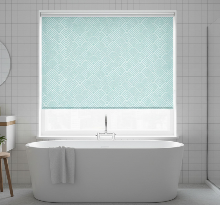 Blå rullegardin med lyseblå zigzagstriber