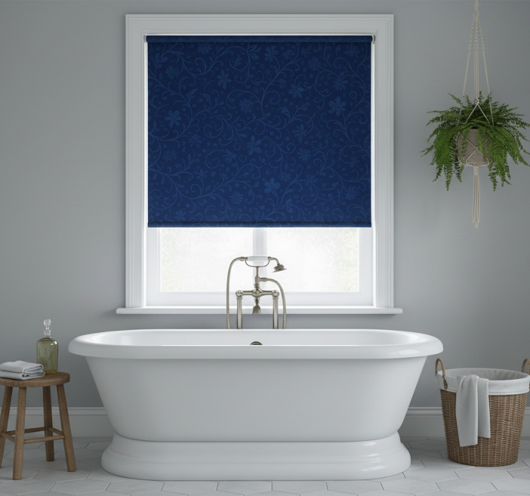 Vores blå rullegardin med mønster af marineblå blomster er ikke kun funktionelt, men også en æstetisk fornøjelse. Det tilføjer et unikt visuel element til dit rum, der fanger opmærksomheden og skaber en beroligende atmosfære. Med et sådant blå rullegardin kan du nemt forvandle ethvert rum til et stilfuldt fristed, hvor du kan slappe af og nyde din tid hjemme. Det er en fantastisk måde at forbedre indretningen på og give dit hjem et personligt præg.