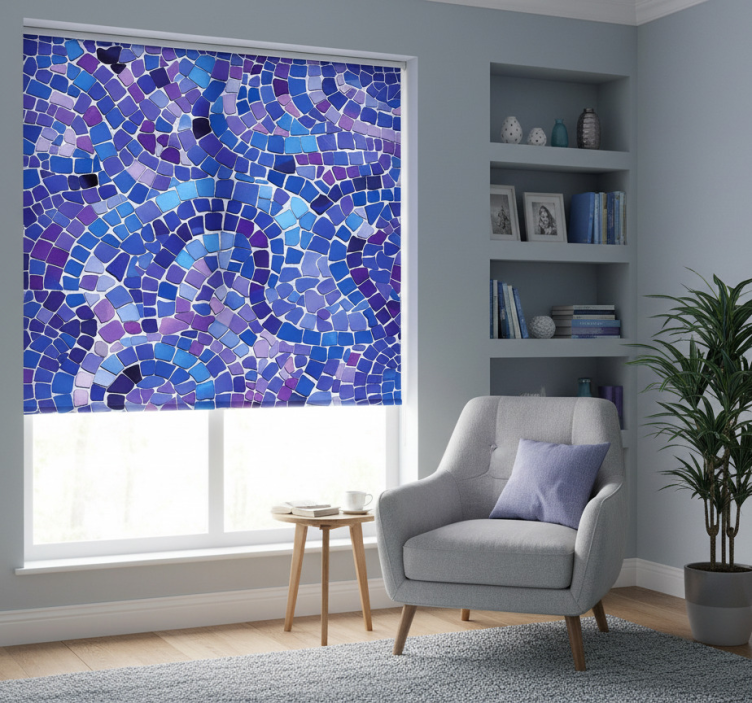 Blå rullegardin med mosaikeffekt