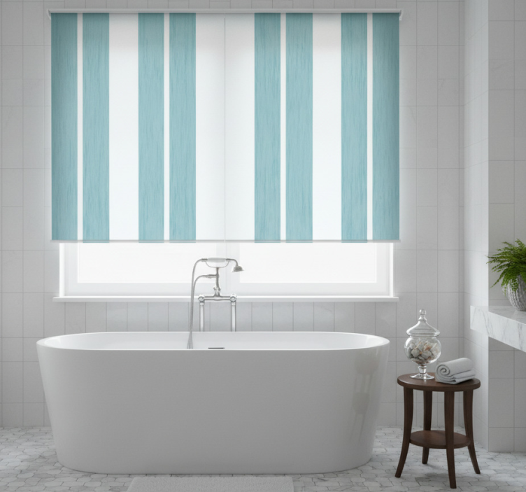 Blå rullegardin med turkise striber