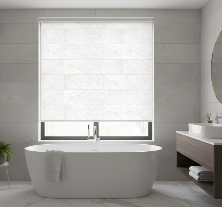Grå rullegardin i grå nuancer med guld marmor