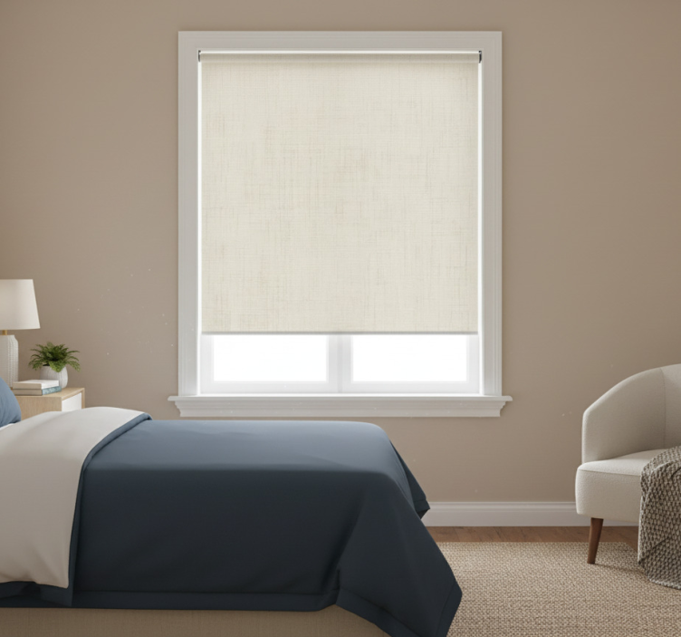 Grå rullegardin i neutral linnedtekstur