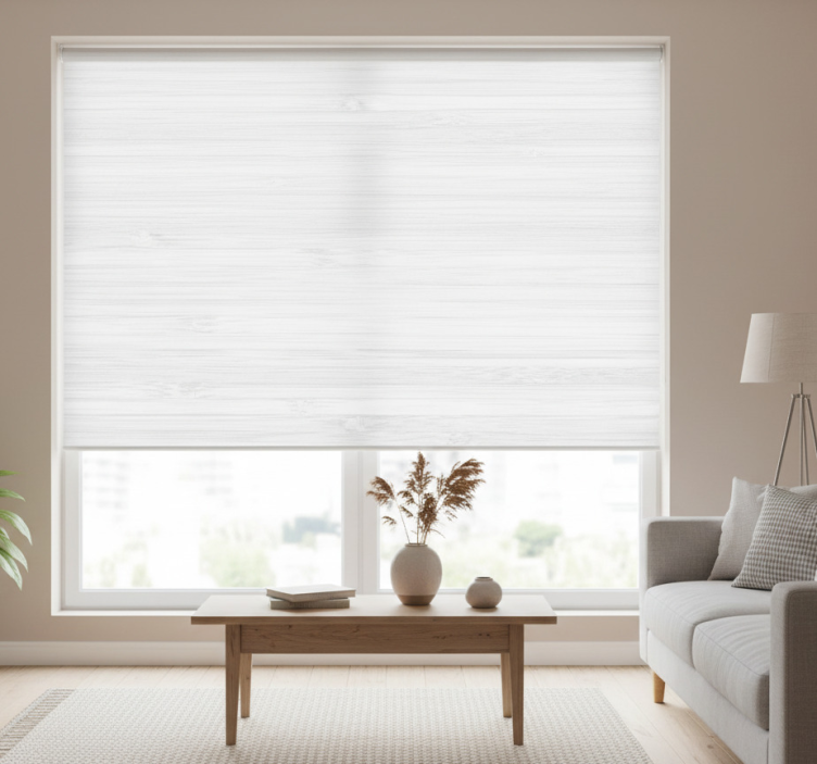 Grå rullegardin i stilrent hvidt træ