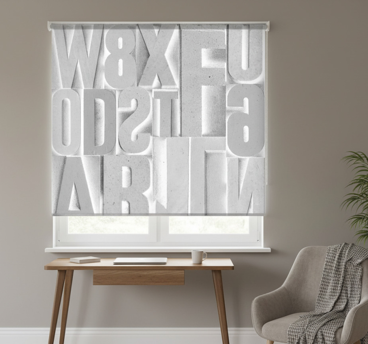 Grå rullegardin med 3d grå bogstaver