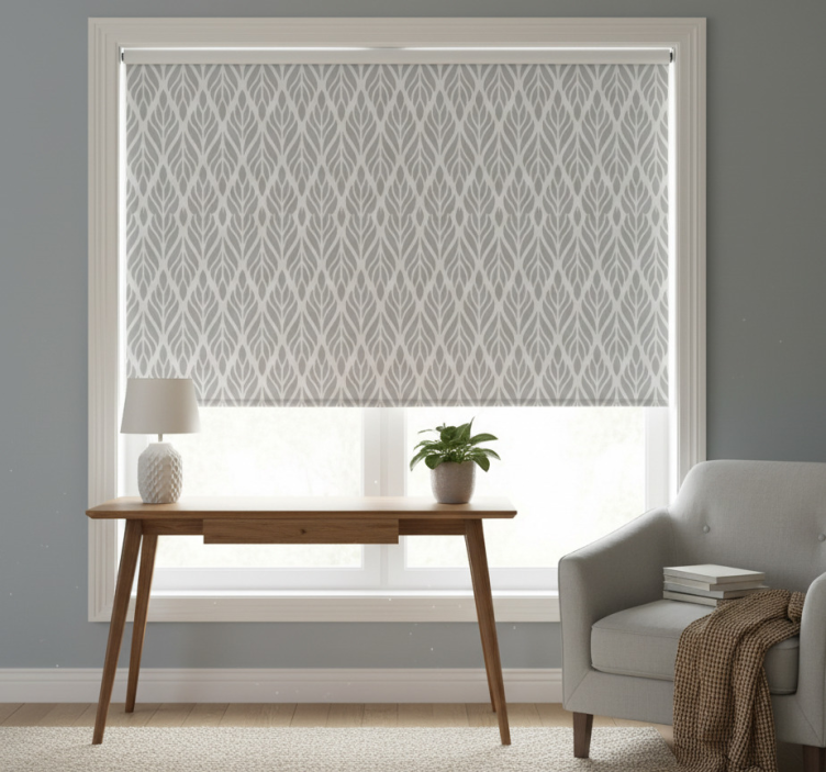 Grå rullegardin med etnisk blomstergrå mønster