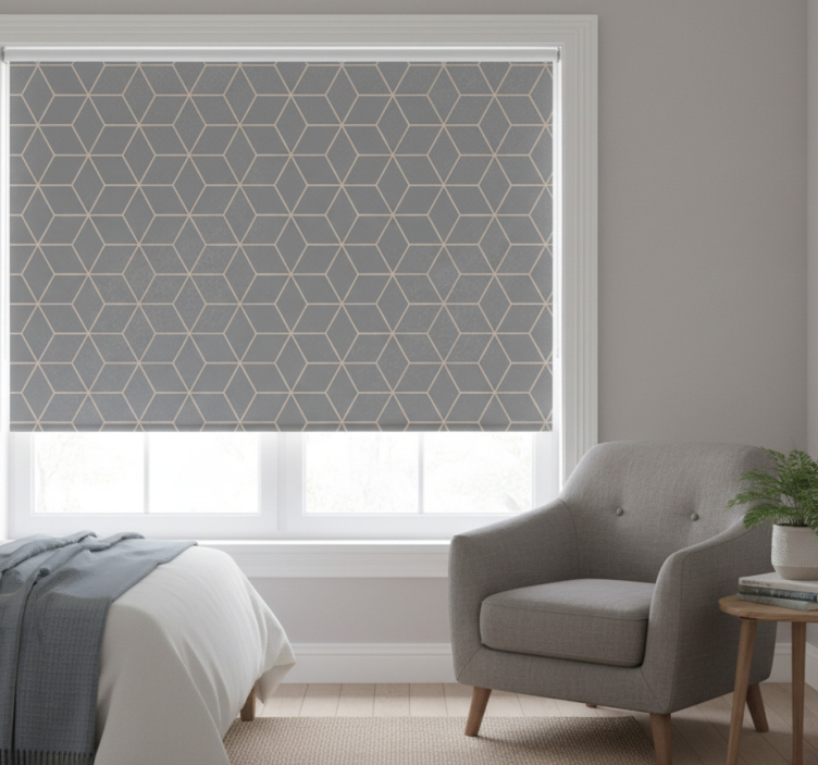 Grå rullegardin med geometrisk grå hexagon mønster