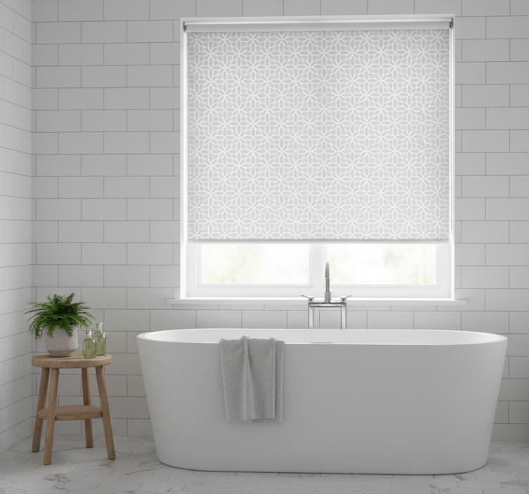 Grå rullegardin med moderne grå og hvidt mønster