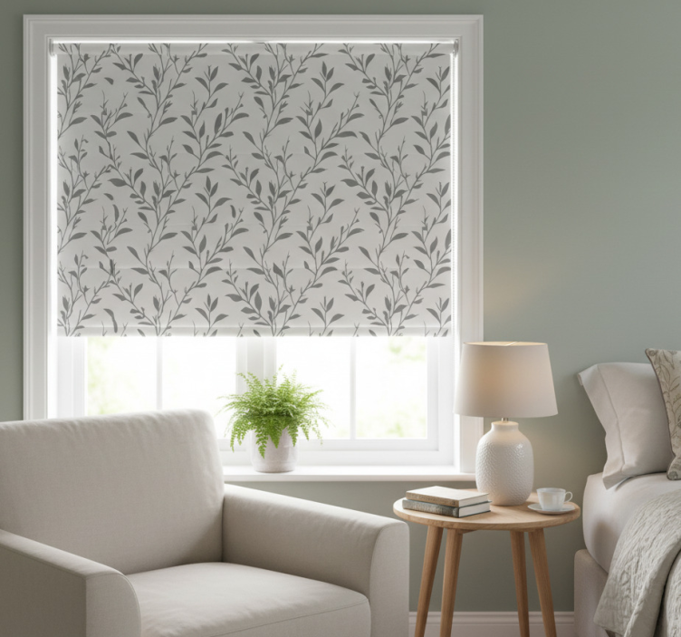 Grå rullegardin med olivenblade