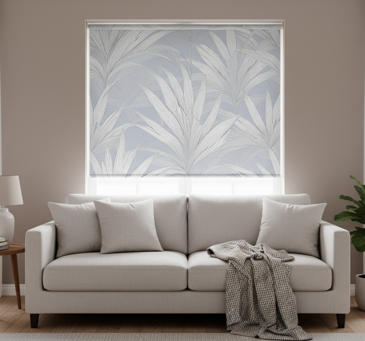 Grå rullegardin med palmeblade