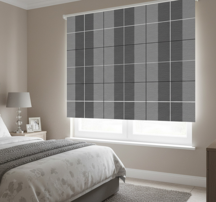Grå rullegardin med skotsk mønster
